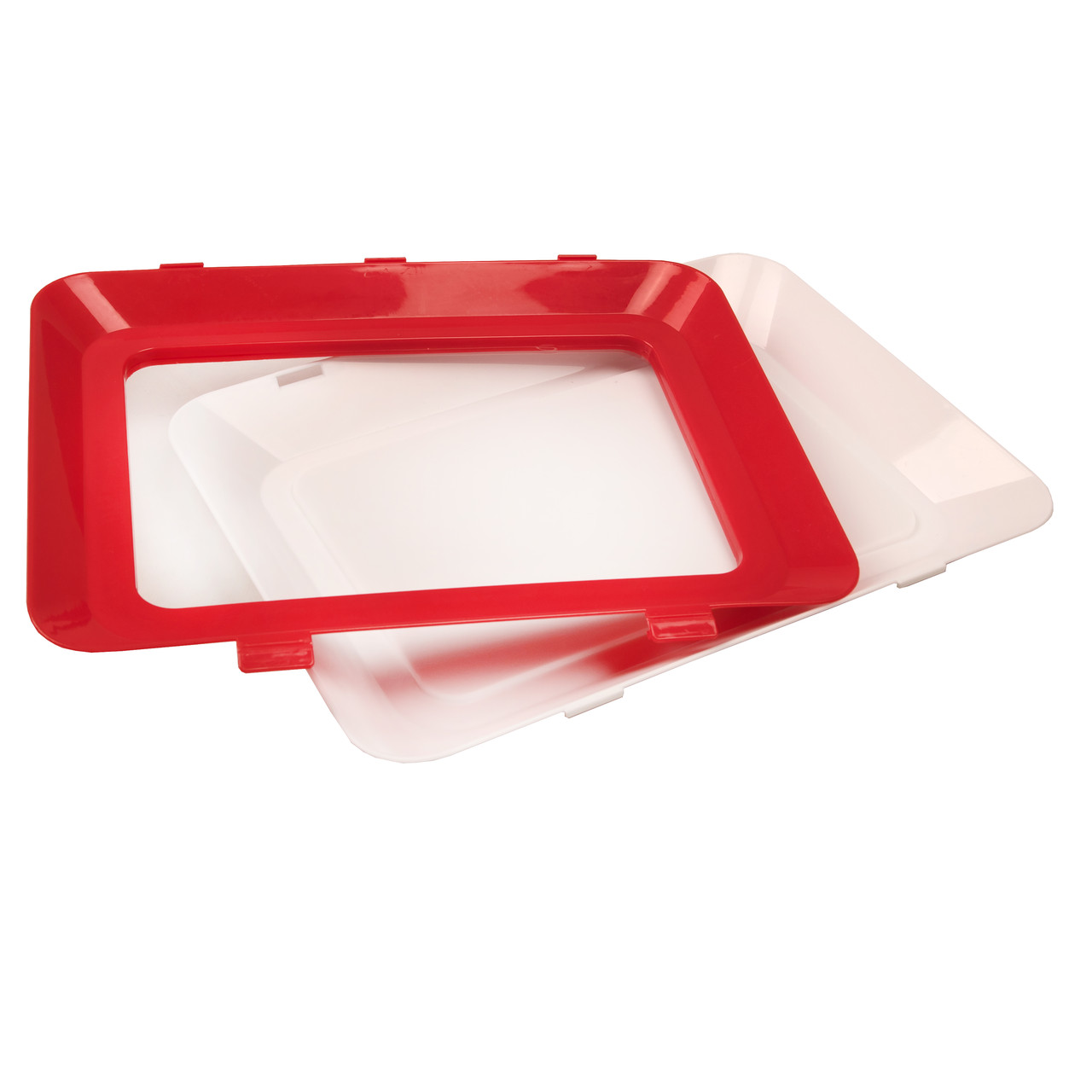 Кілька таких підносів, складених одна на одну, зручно розмістяться в холодильнику та суттєво заощадять простір.